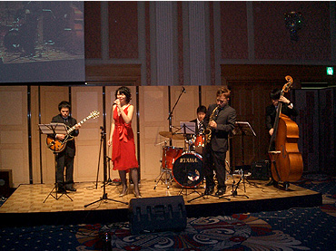 ジャズバンド + ボーカル で華やかに ホテルでの企業クリスマス会の演出を致しました。